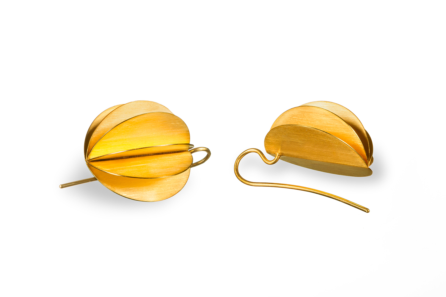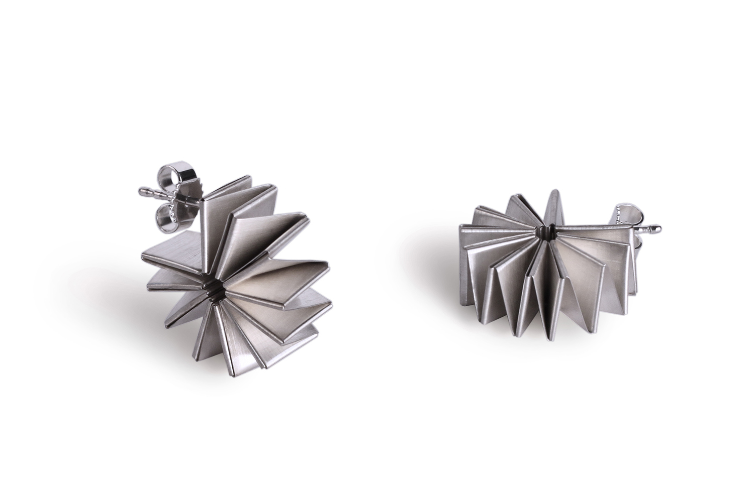 Durch ihre Formensprache erscheinen die Schmuckstücke fast wie Papier und erinnern an die japanische Kunst des Origami.