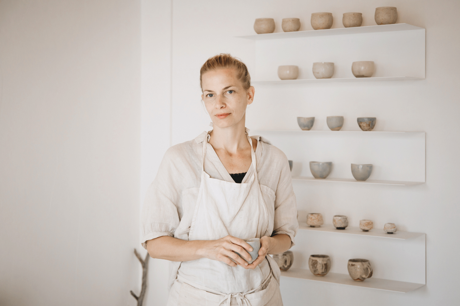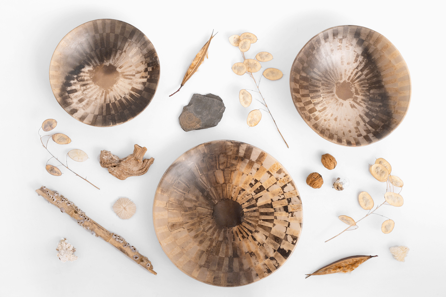 Der Schwerpunkt meiner Arbeit liegt im Erstellen keramischer Objekte in Aufbautechnik und der anschließenden Gestaltung im Rauchbrand. Außerdem fertige ich Vasen,Trinkschalen und größere Schalen an, die mittels selbst hergestellter Ascheglasuren im Elektroofen hochgebrannt werden.Meine im Rauchbrand gefertigten Keramiken strahlen durch eine geometrische Musterung eine ästhetische Klarheit aus. Diese steht im Dialog mit dem/der BetrachterIn. Fragen nach Herkunft, Identität, Vergänglichkeit, zwischenmenschliche Begegnungen spielen während meiner Arbeit eine große Rolle. Als gelernte Schneiderin arbeite ich auch mit Textil. Mit natürlichen Pigmenten färbe ich Stoffe und verarbeite diese in Wandbehänge. Die natürlichen Farben der textilen Arbeiten und der Keramiken, unterstreichen die Verbindung zwischen Natur, Mensch und Handwerk.