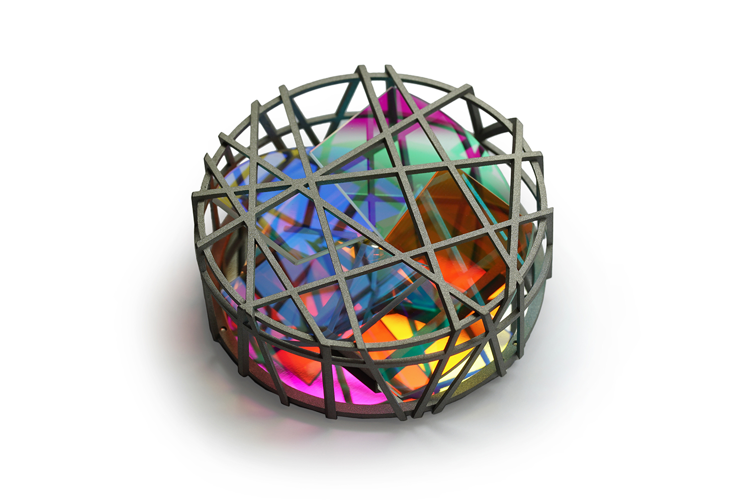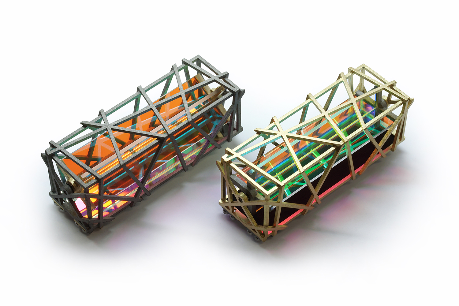 Der Goldschmied und Kunsthandwerker kreiert und fertigt diese außergewöhnlichen Schmuckstücke aus Edelstahl und Gold, oft ergänzt durch Edelsteine oder dichroitisches Glas.