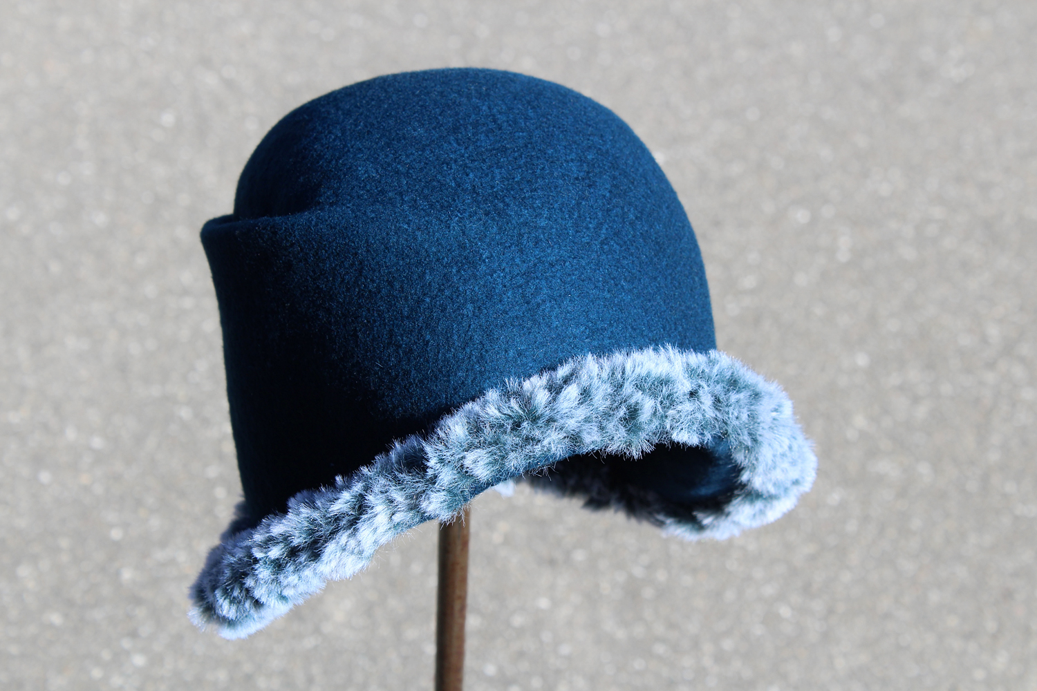 Bei meinen Hüten handelt es sich ausschließlich um handgefilzte Unikate aus hochfeinem Merinokammzug. Aus der losen Wollfaser entstehen durch den Filzprozeß wunderbare