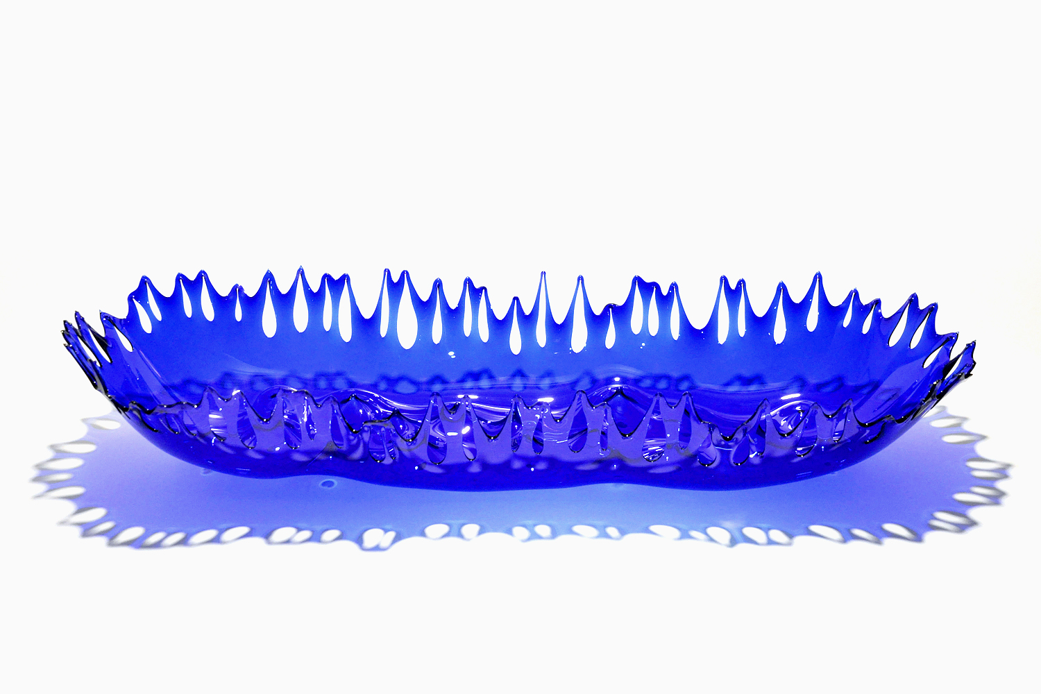 Glas ist nicht fest, nicht flüssig, aber in Bewegung. Eine Materialeigenschaft, die mich dazu motiviert hat, dieses Medium zu verwenden. Mit einem gezielten Brenn- und Abkühlvorgang lasse ich das Material für kurze Zeit flüssig werden, erhalte diesen Moment und friere ihn ein. Die so entstehenden Glasgefäße materialisieren den dynamischen Prozess im Ofen. Sie dehnen und strecken ihre glänzende Haut öffnen sich dem umgebenden Raum und umschreiben ein Volumen.