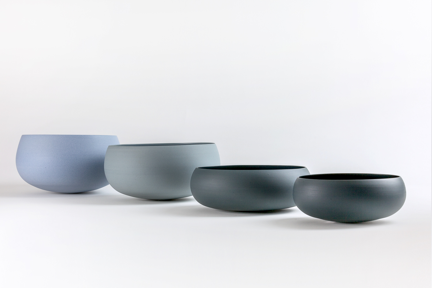 Bei meinen Schwingschalen aus weißem und durchgefärbtem Porzellan steht die Idee einer ausgewogenen harmonischen Form, ihre ästhetische Qualität und Gleichgewicht im Vordergrund. Die Wölbungslinie der Form zieht sich durch das ganze Gefäß und gibt den Ausdruck von Leichtigkeit und Schweben. Die Gefäße balancieren auf einem Punkt. Farbe und Form sollen auf ideale Weise harmonieren. Die unglasierte, glatt geschliffene Außenseite ergibt eine optisch matte und haptisch angenehme Oberfläche. Die Innenseite ist transparent glasiert, dies ergibt einen angenehmen Kontrast zwischen glänzend und matt sowie eine unterschiedliche Farbwahrnehmung. Die Schwinggefäße werden frei gedreht.